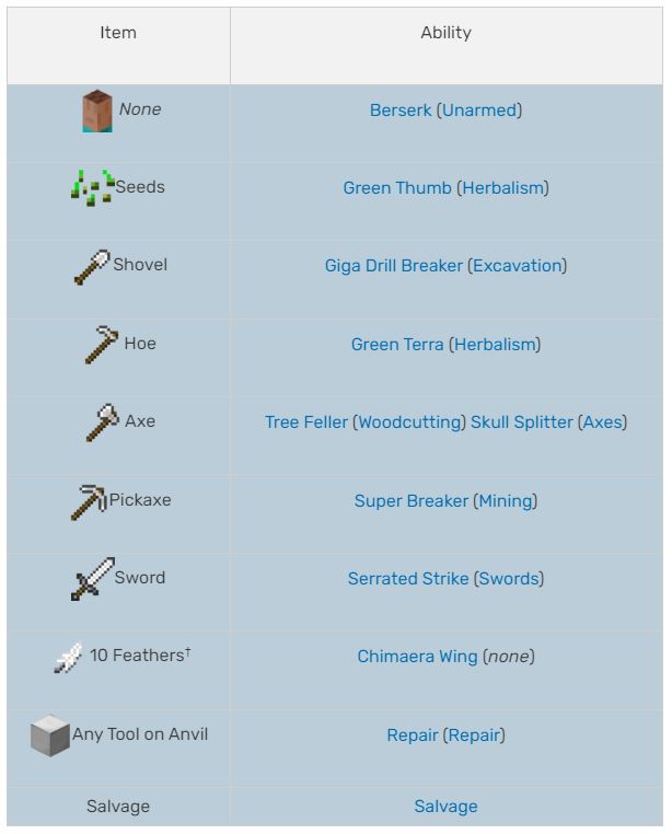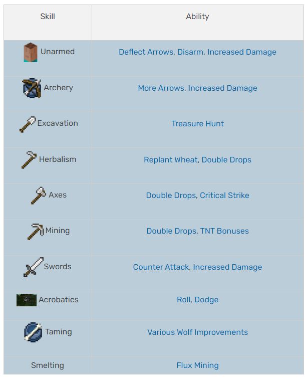 * **Swords:** You have the option to apply Rupture effects to your attacks in the Swords mcMMO and block opponent hits.